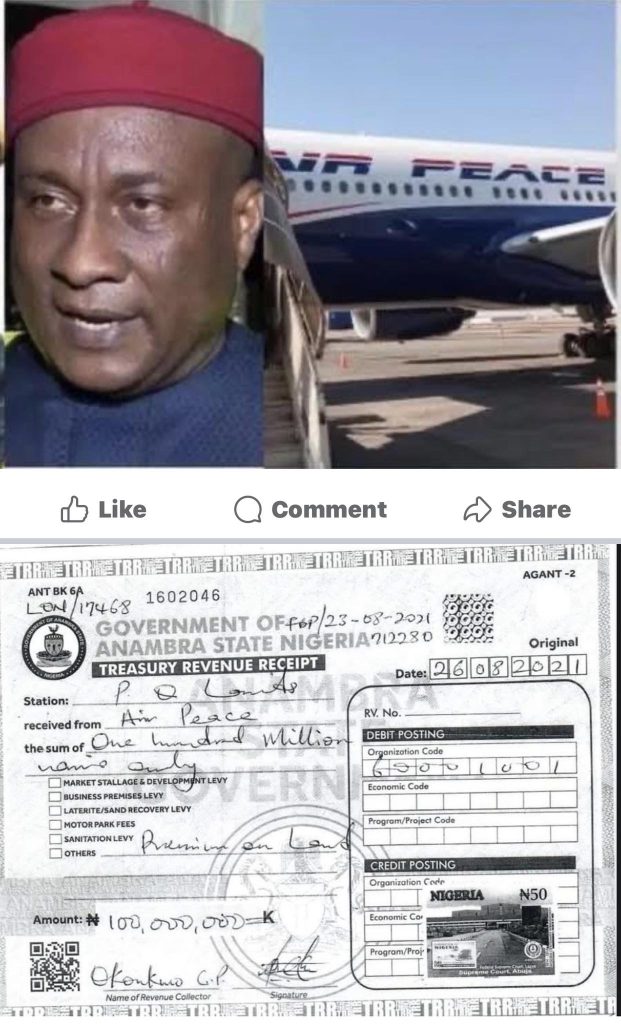 In a statement issued on October 9, 2025, Air Peace stated that its engagement for the MRO project was conducted solely with the Anambra State Government, not with any community or group. The airline confirmed that the payment for the land was made directly to the state government, which subsequently issued an official receipt dated August 26, 2021, for the ₦100 million transaction.