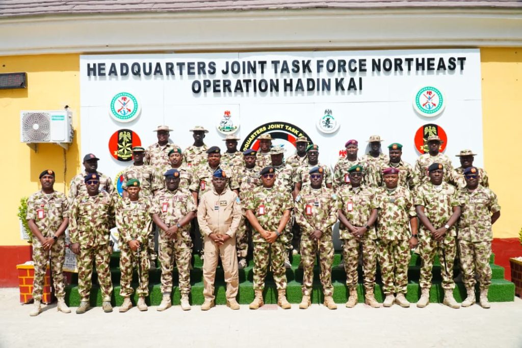 According to the Media Information Officer, Headquarters Joint Task Force (North East), Operation HADIN KAI, Lieutenant Colonel Sani Uba, the visit featured operational briefings at the Theatre Command Headquarters, exchange of souvenirs, signing of the visitors’ book, group photographs, and a guided tour of the Air Component of Operation HADIN KAI.