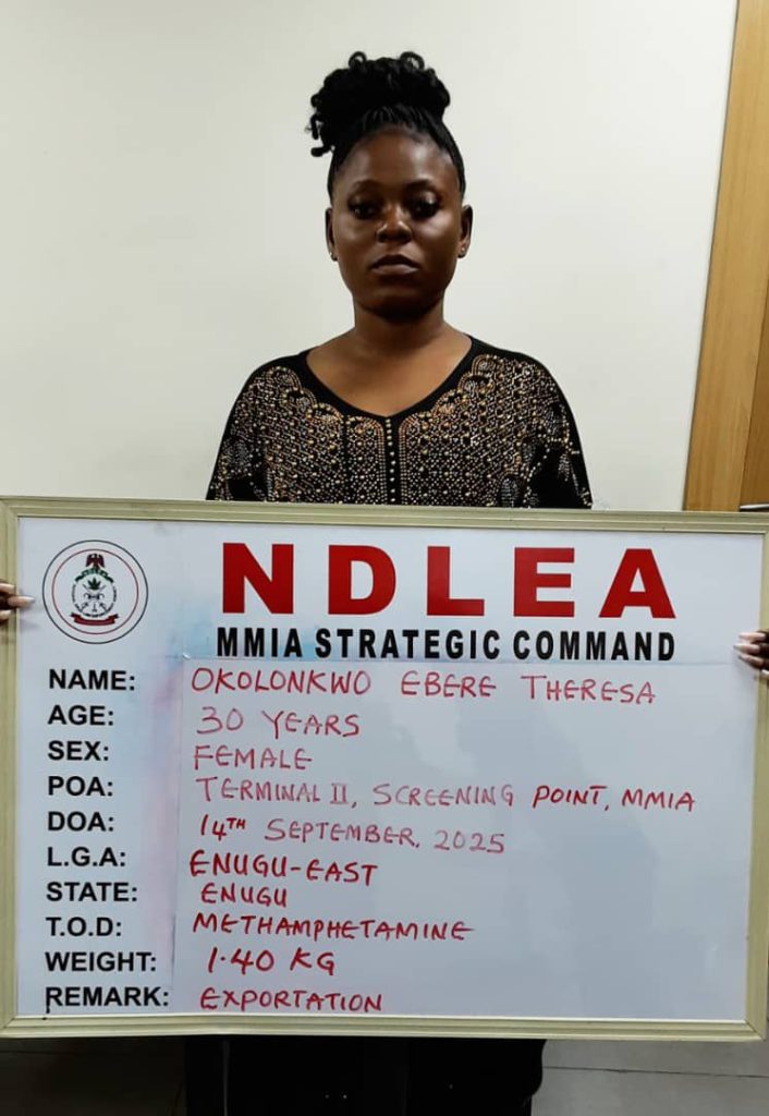 A businesswoman, Okolonkwo Ebere Theresa has been arrested and taken into custody after Aviation Security Officers of FAAN in collaboration with NDLEA operatives attached to the screening point of terminal 2 of the Lagos airport.