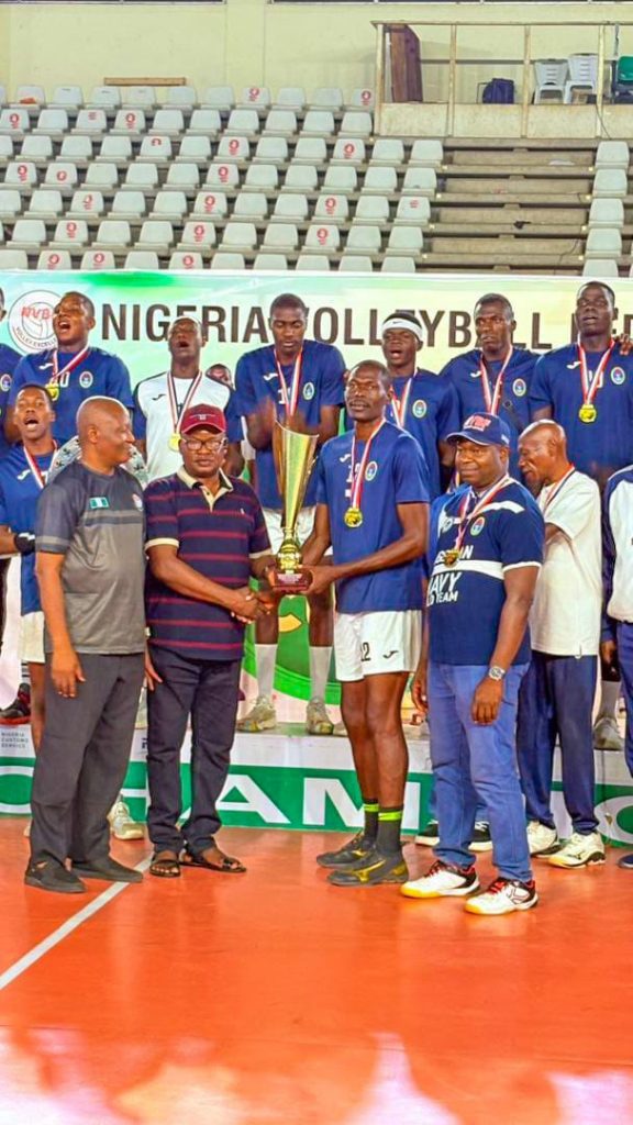 The CNS Male Volleyball Spikers Team won the 2025 National Volleyball Super Cup Tournament by defeating the Customs Service at the Moshood Abiola Indoor Stadium on Saturday, 7 February 2026.