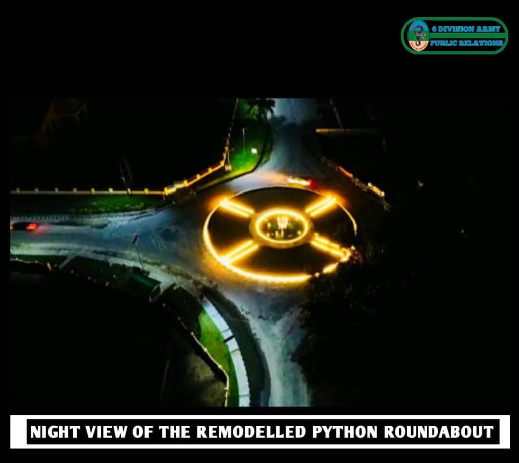 Earlier, Lieutenant Colonel Irinam Otogo said he was spurred to undertake the holistic remodelling of the Python Roundabout, stressing that, as it was before, it did not measure up to the standard of infrastructural development set by the GOC in terms of environmental cleanliness and illumination across all formations and units under 6 Division.