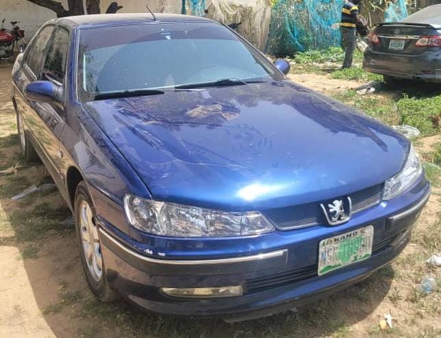 Items recovered from the suspects include a fake police warrant card, a pair of handcuffs, ₦2,500 in CFA currency, mutilated naira notes, and their operational vehicle — a blue Peugeot 406 with registration number NSR-188-BD.