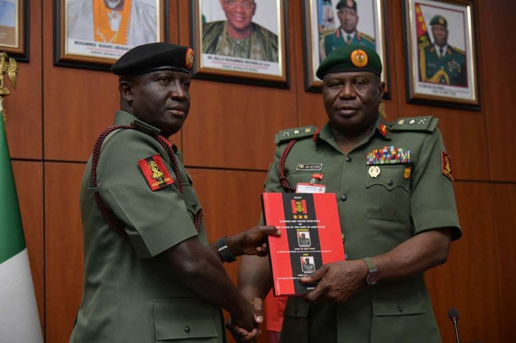 According to the Acting Director Army Public Relations, Lieutenant Colonel Appolonia Anele stated in a statement that the ceremony featured the signing of the handing and taking over notes, decoration of the new Chief with the Army Headquarters insignia, inspection of the quarter guard.