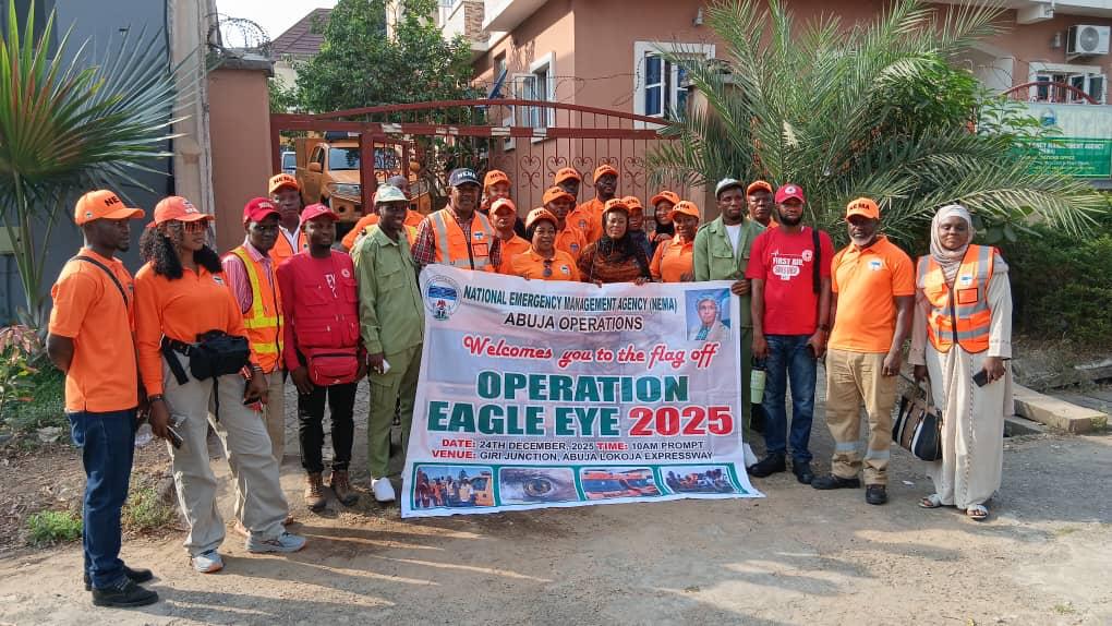 The National Emergency Management Agency (NEMA), Abuja Operations Office, has flagged off Operation Eagle Eye 2025 at Giri Junction along the Abuja–Lokoja Federal Highway, as part of coordinated efforts to enhance road safety, improve traffic management and ensure rapid emergency response during the Yuletide season.