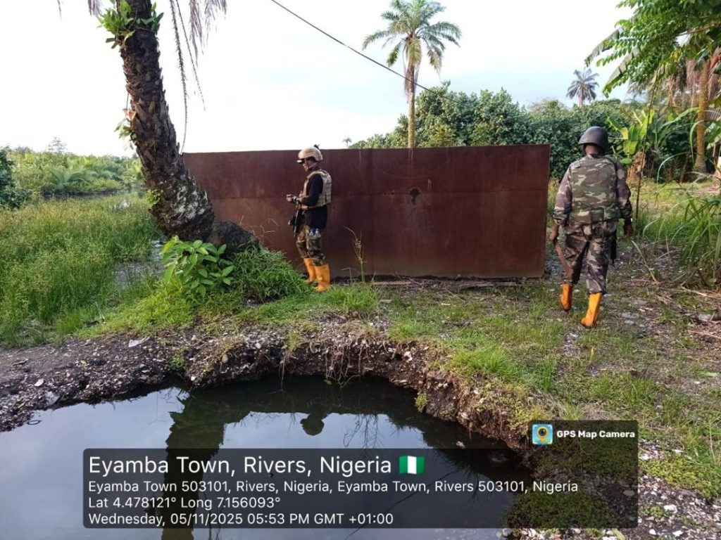 In similar circumstances, Forward Operating Base Bonny personnel dismantled an active illegal refining site at Eyamba Community in Bonny Local Government Area of Rivers State, and the Nigerian Navy Ship DELTA patrol team deactivated another site at Opumani Creek in Warri South Local Government Area, Delta State.